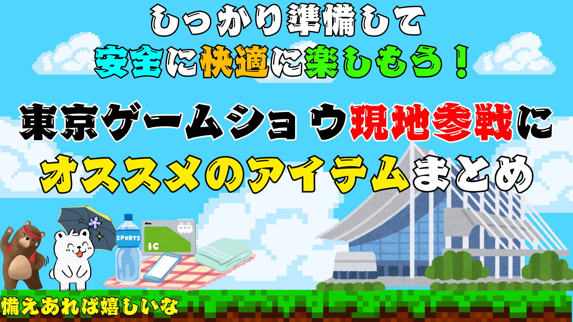 また思い出したり他の方が持っていっていていいなと思ったようなことは開幕まで随時書き足していきますのでゲームショウ参加の際にはぜひ持ち物選びの参考にしていただければと思います。