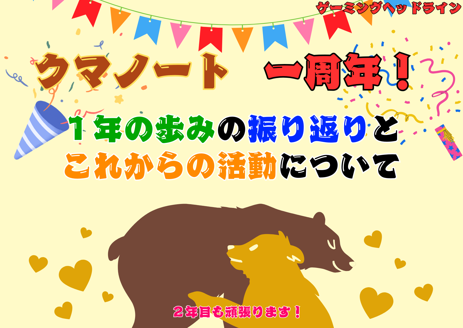 ゲーミングヘッドライン~一点集中!クマノート~ ブログ1周年! 1年の振り返りとこれからの活動について