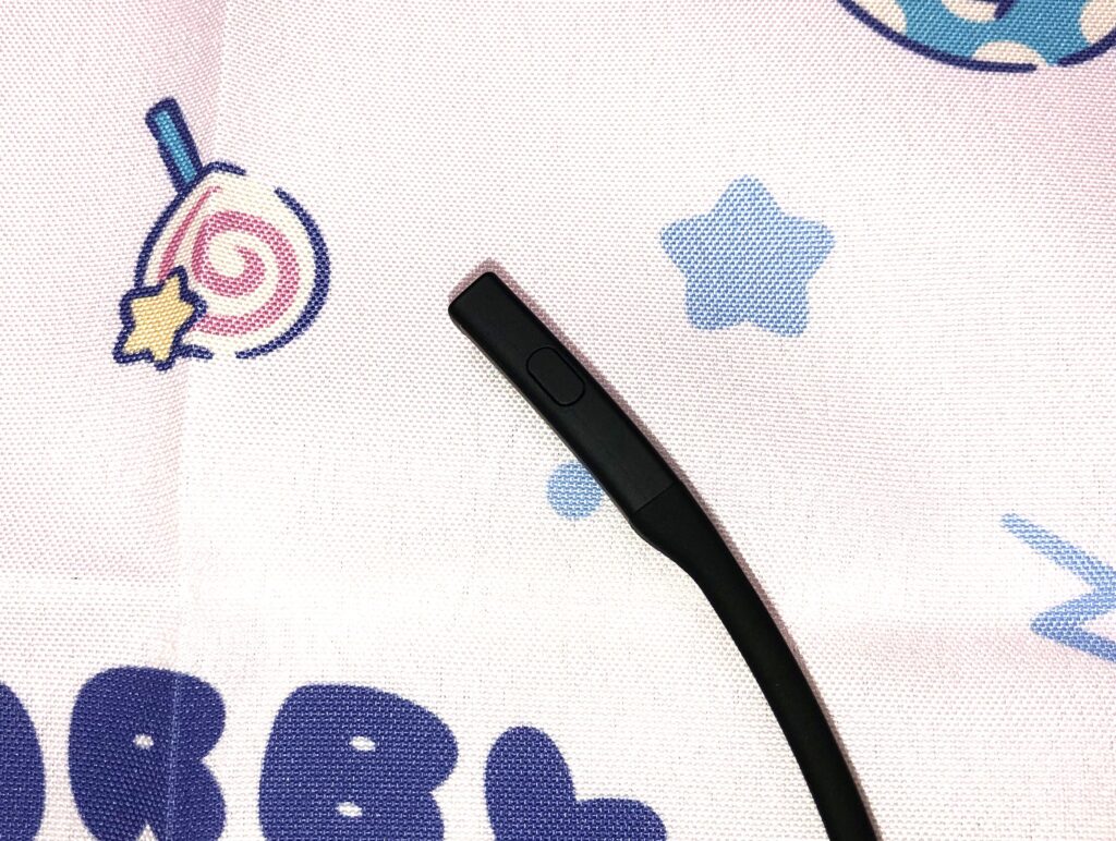 ちょっと見づらいですがこのマイクの部分にある楕円形のボタンをポチっと押すだけで「ミュートしました」という音声が流れてマイクを切ることができます。