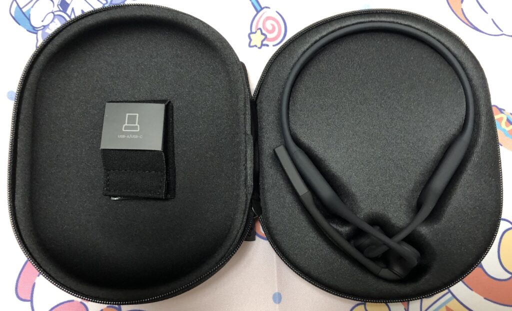 また余談ですが専用の固いケースが付いておりマイクブームを回して畳めばきれいに保管できるようになっているため持ち運びする場合にも安心できるようになっています。(ドングルを収納する部分もあるのでノートPCやスマホと共に持ち出す場合にも便利です)