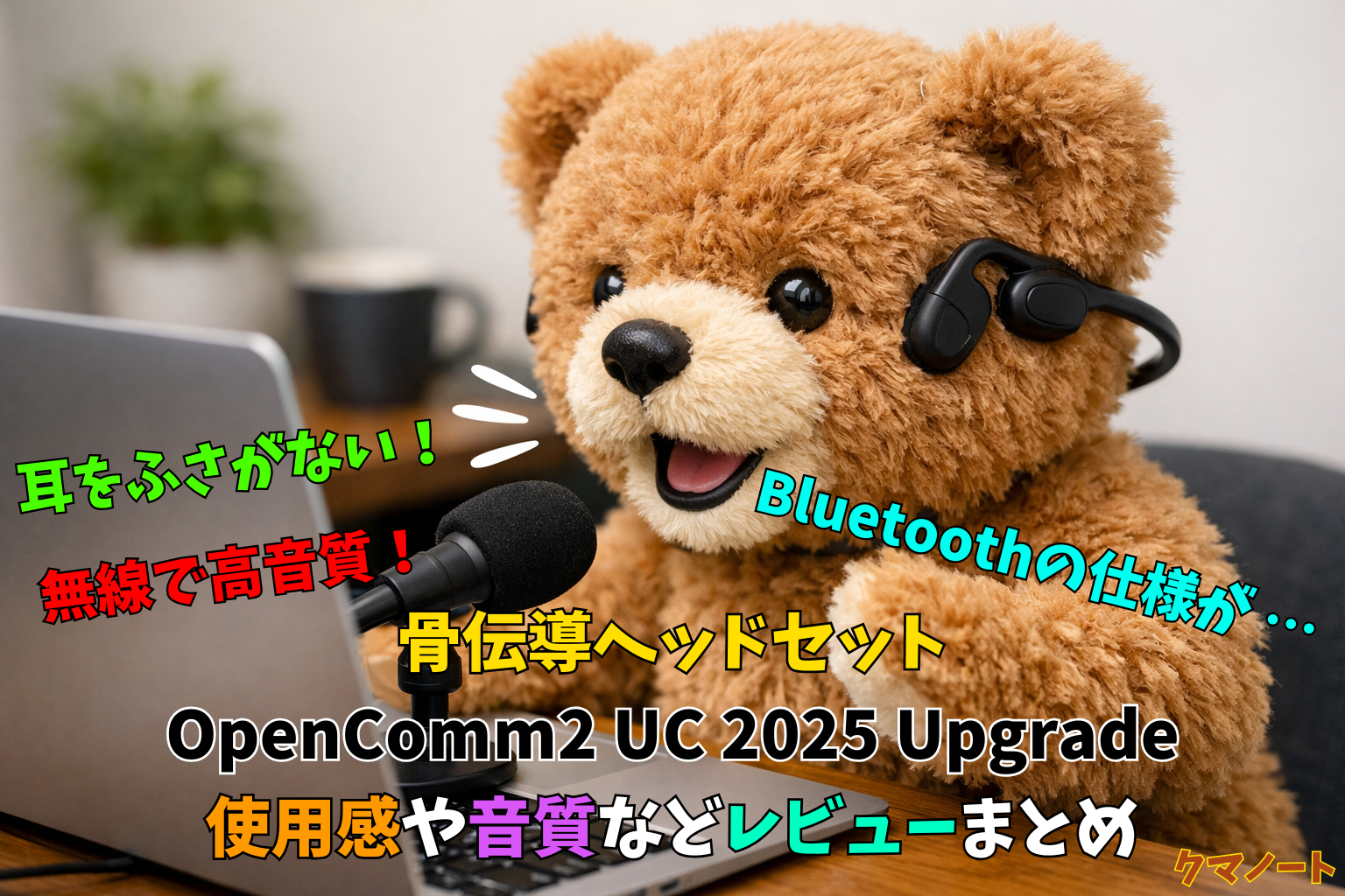 筆者は以前からこちらのメーカーの骨伝導イヤホンを愛用していましてPCで使うマイクやイヤホンを無線にしたいと考えているとちょうどPCにもいろいろトラブルがあり従来の接続方法と異なるイヤホンが必要になりまして、ならいっそ無線のヘッドセットにしてしまおうと考えこちらを思い切って購入しました。(いろいろについては無線化への道と題していずれまた別の機会に)