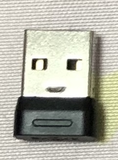 このように端子部分よりも小さい送信機が先についているだけの一般的なワイヤレスマウスなどと同じ仕様のドングルです。