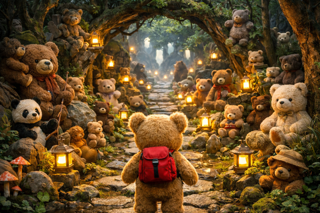 ちょっと前に作ったので記憶があいまいなのですがたくさんのテディベアと指定したはずがなぜかパンダさんが乱入・・・